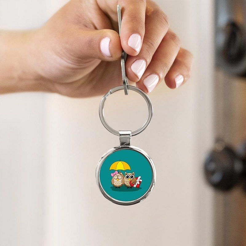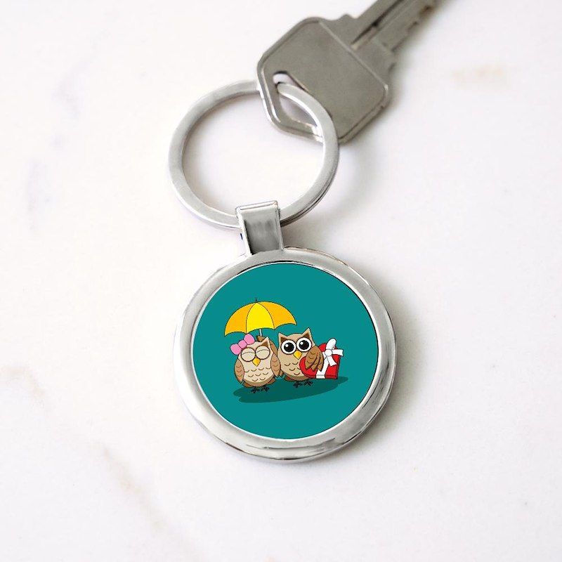 Cute Owl Lovers w/ Umbrella & Red Circle Keychain
