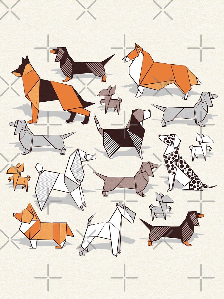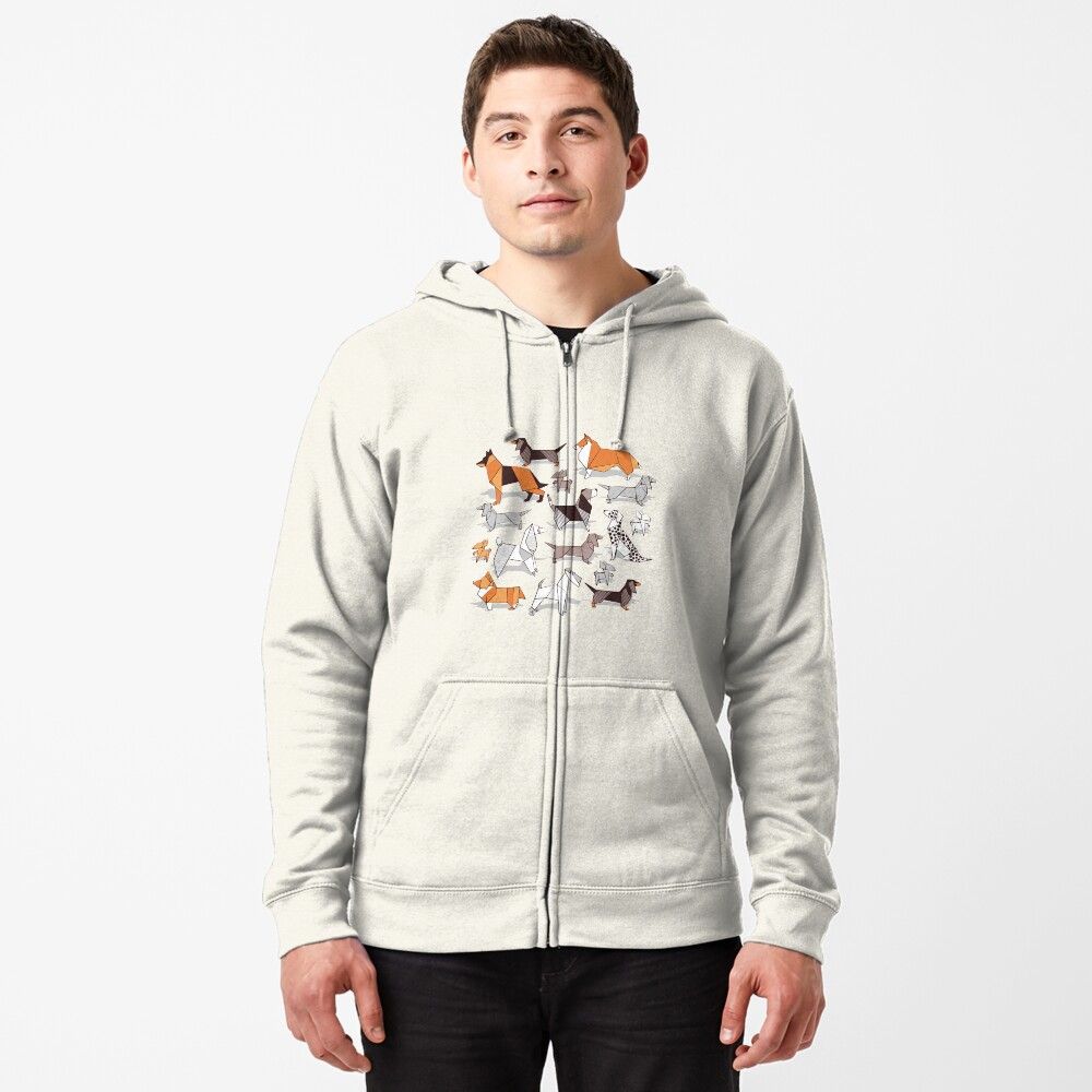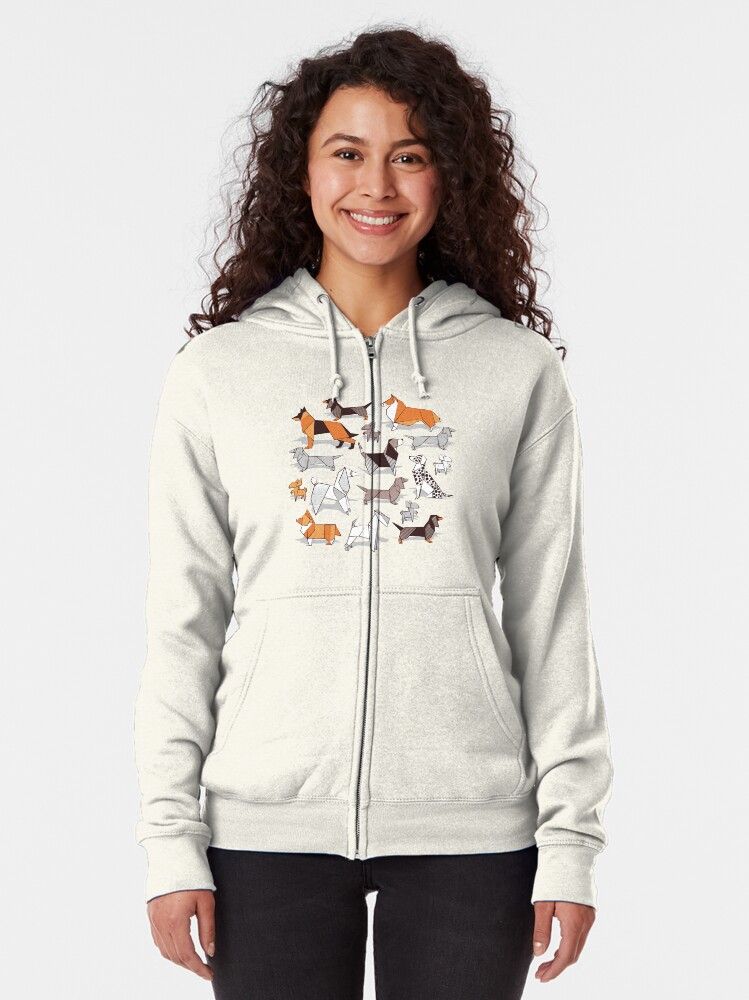 Origami doggie friends // grey linen texture background Zipped Hoodie