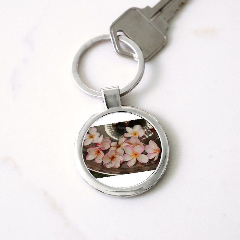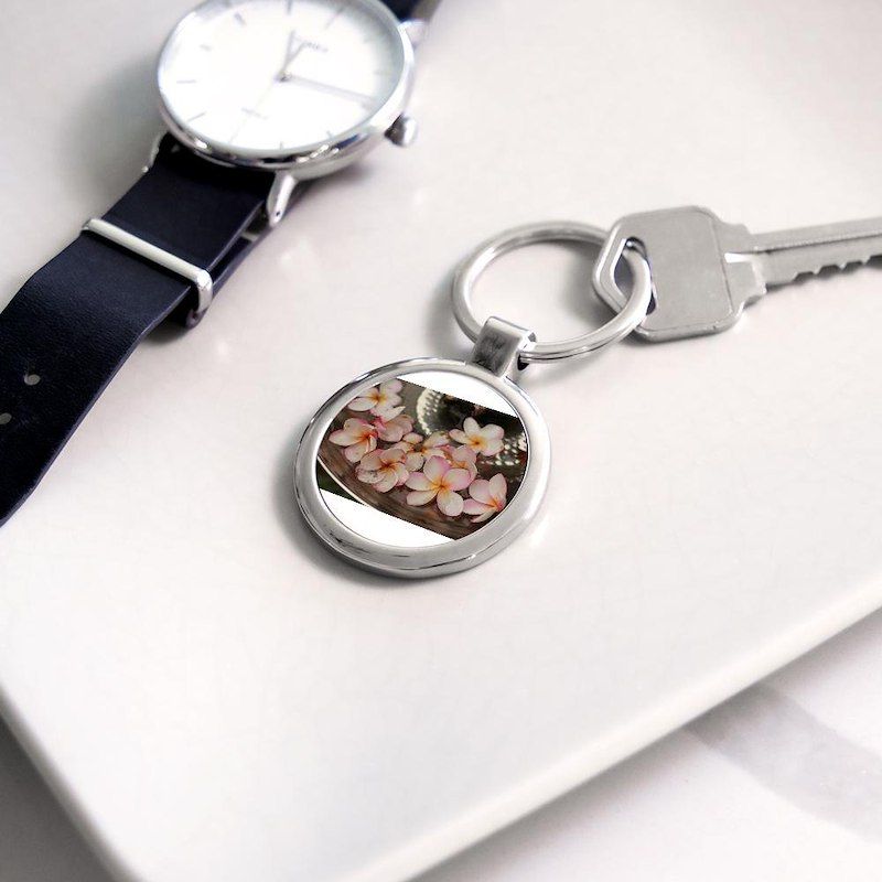 Round keychain measures 1.26 x 1.26 x 0.125 inches