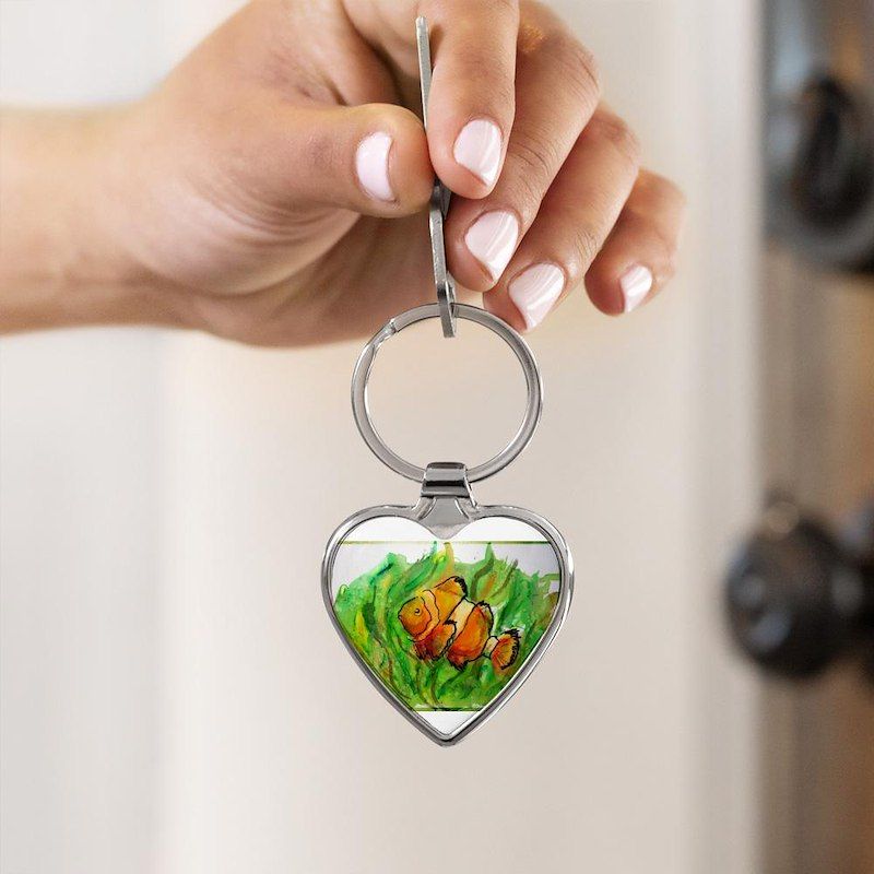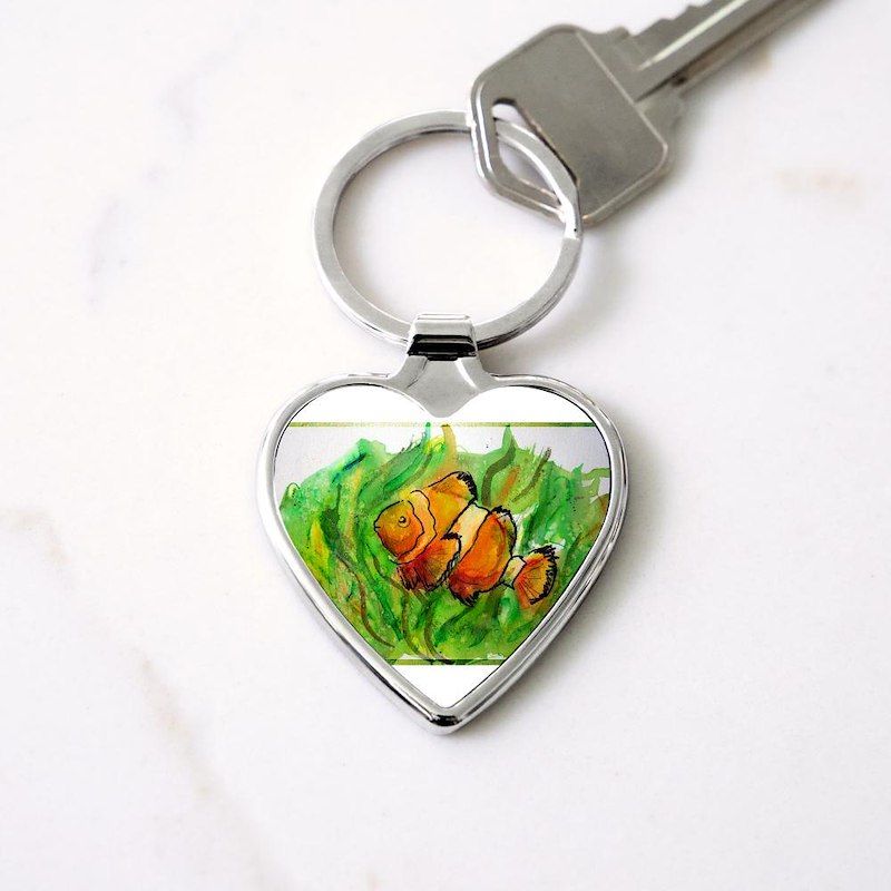 Tropical fish! Colorful art! Heart Keychain